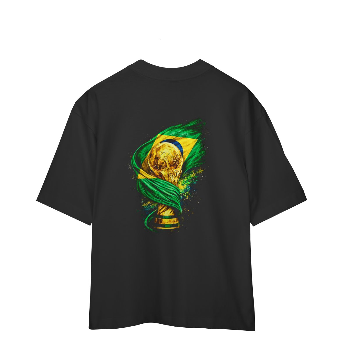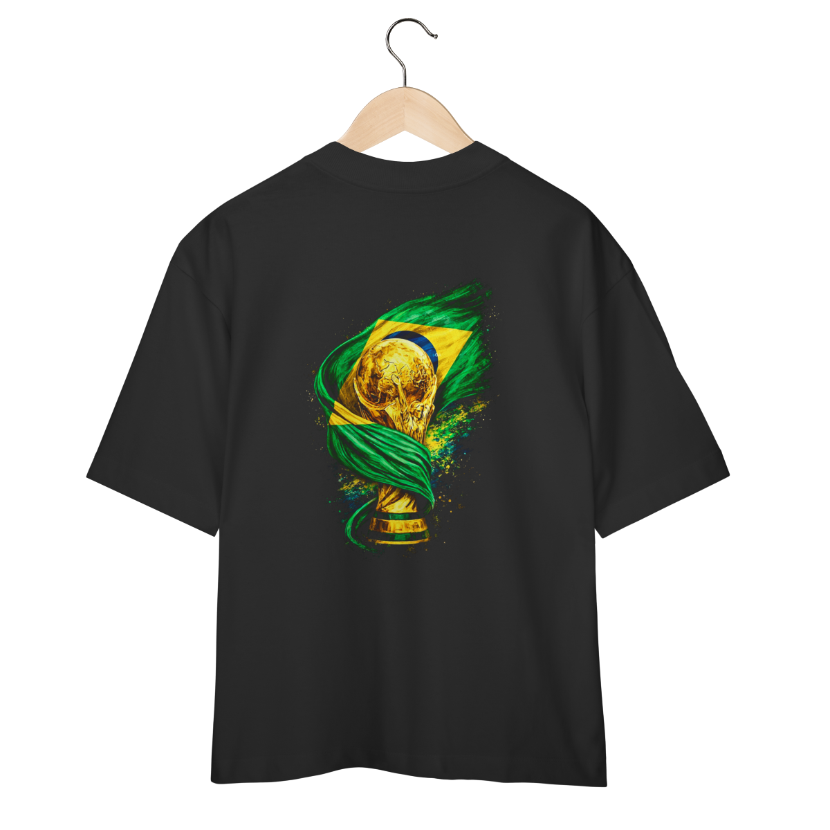 BRAZILIAN GLORY — GOLDEN LEGACY representa a essência da conquista brasileira. O símbolo máximo da vitória surge em dourado intenso, envolto por um movimento fluido nas cores verde e amarelo, criando uma composição que transmite energia, orgulho e tradição.
