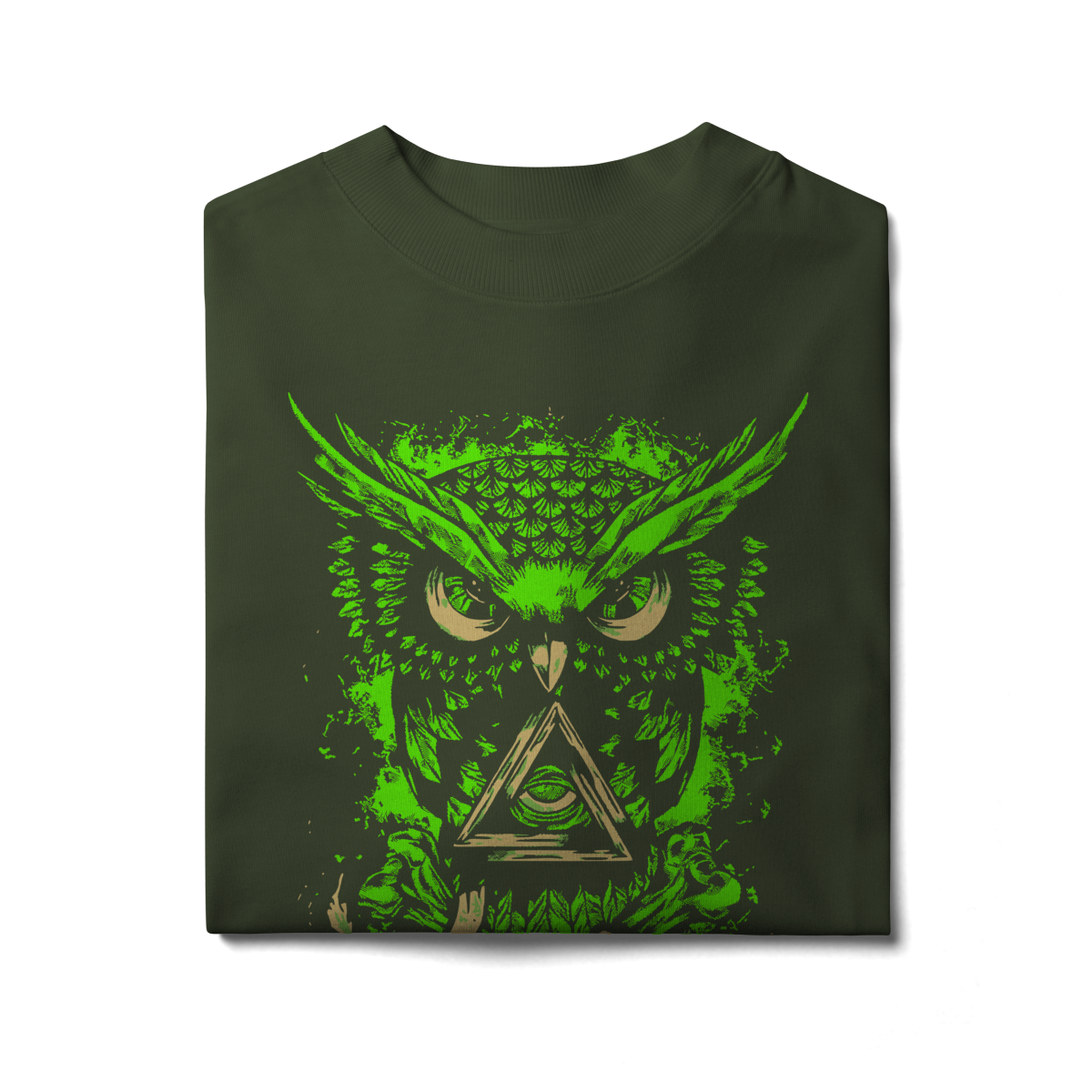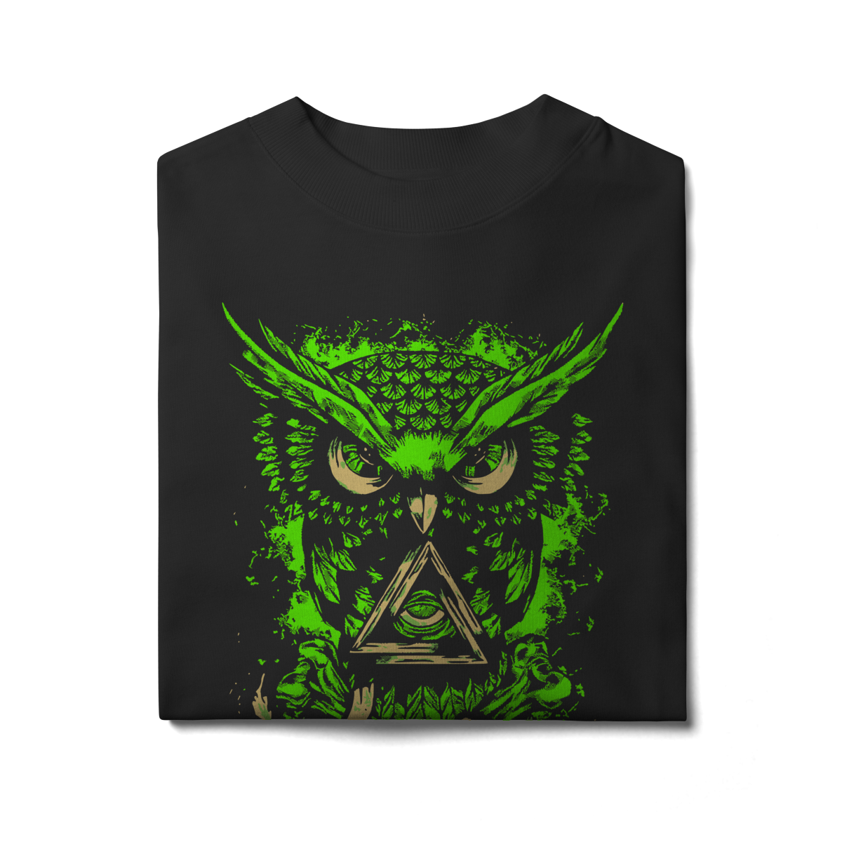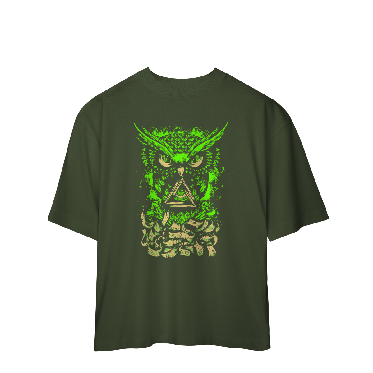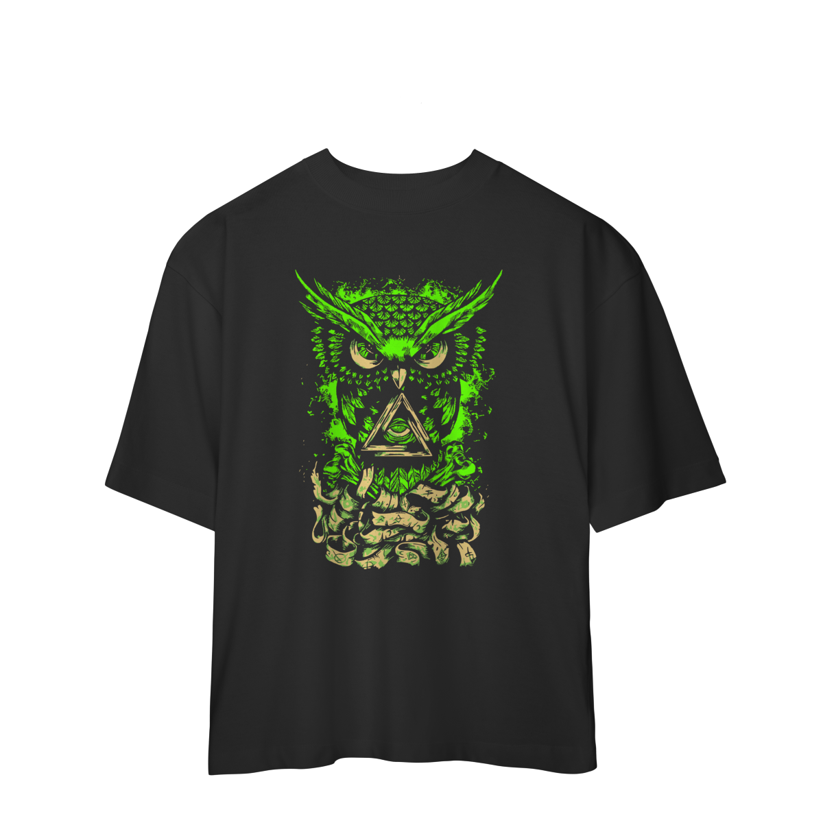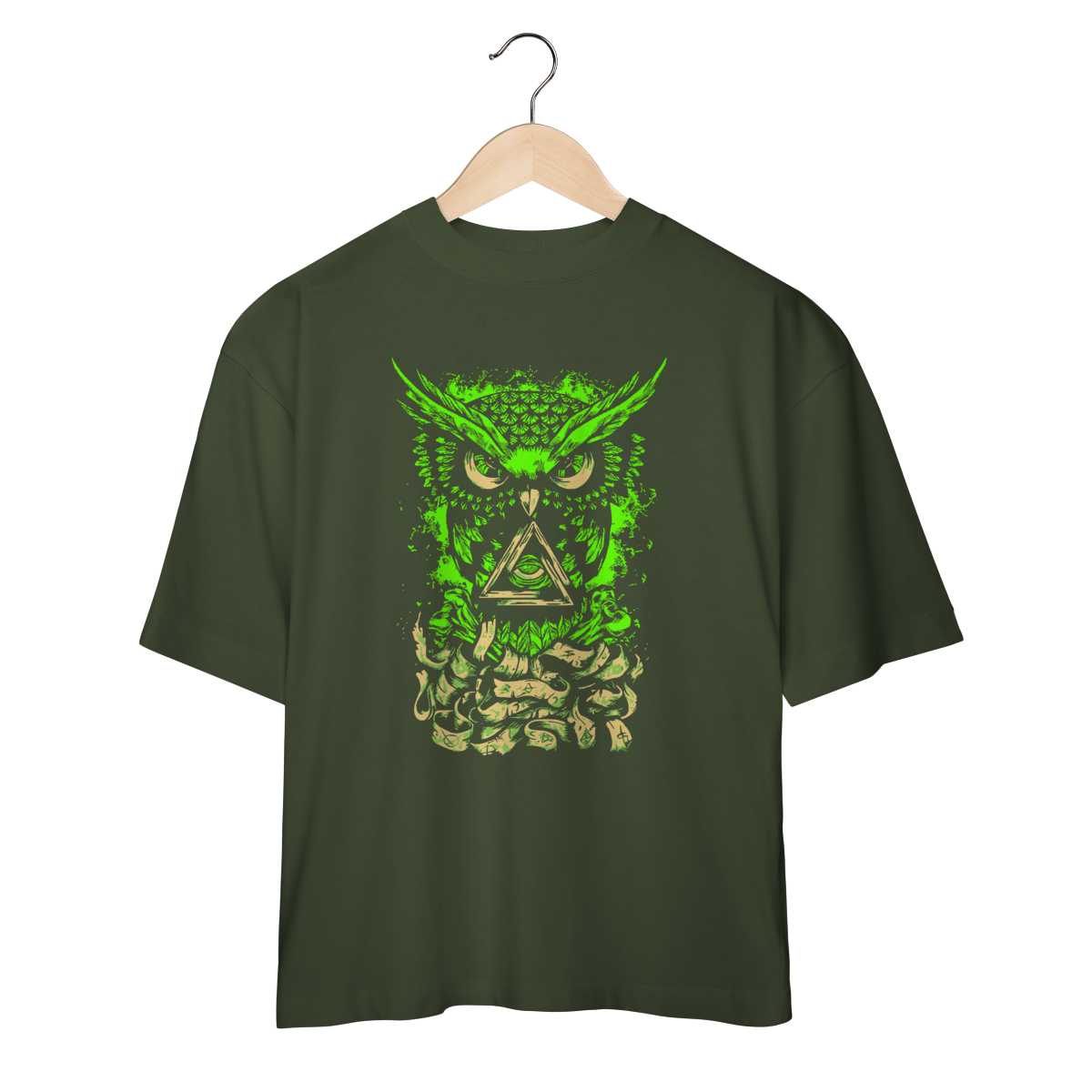 A estampa VERDE ARCANO — THE WATCHER traz a coruja como símbolo supremo da sabedoria oculta, vigilância constante e domínio mental. Seu olhar penetrante emerge do caos visual em tons de verde intenso, criando uma atmosfera hipnótica, quase ritualística.
